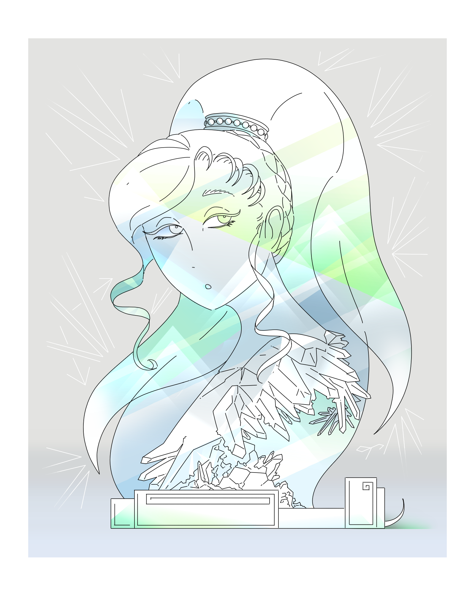 The volcanic island's actual first inhabitant. They were born and taken away before anyone else was born, so no one remembers them ever being there at all. Biphos lives on the moon now, and they quite like it there even though for most of their life they've been the only gem around. Or maybe they don't have anything else to compare it to. They know they used to live on Earth, and they frequently wonder about what's going on down there. They live a hedonistic life filled with cute outfits and lavish vacations. They're secretly very lonely.