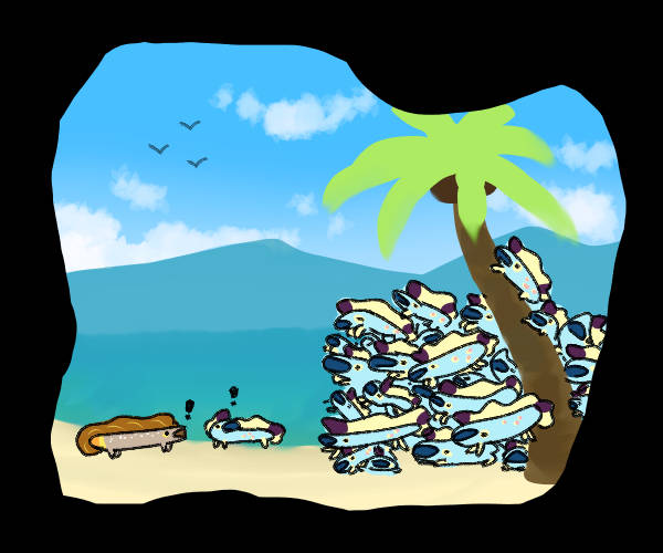 How could I become part of this? I thought hard. There was a mascot bagbean available to draw and use for the group activities, but I wanted my own design to play around with. Instead, I got an idea. I'd make one of the open species which can be created for free, and then explore the world that way! Here's Frank's very first piece of art: